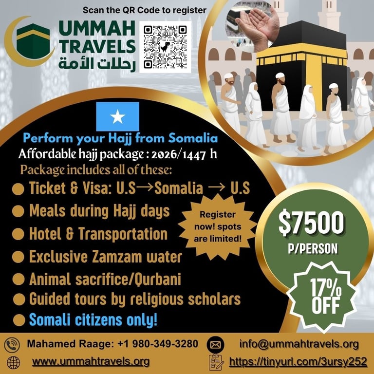 We are booking winter umrah travel & hajj from somalia. Call us or email us as soon as you can to reserve your spot!!!!