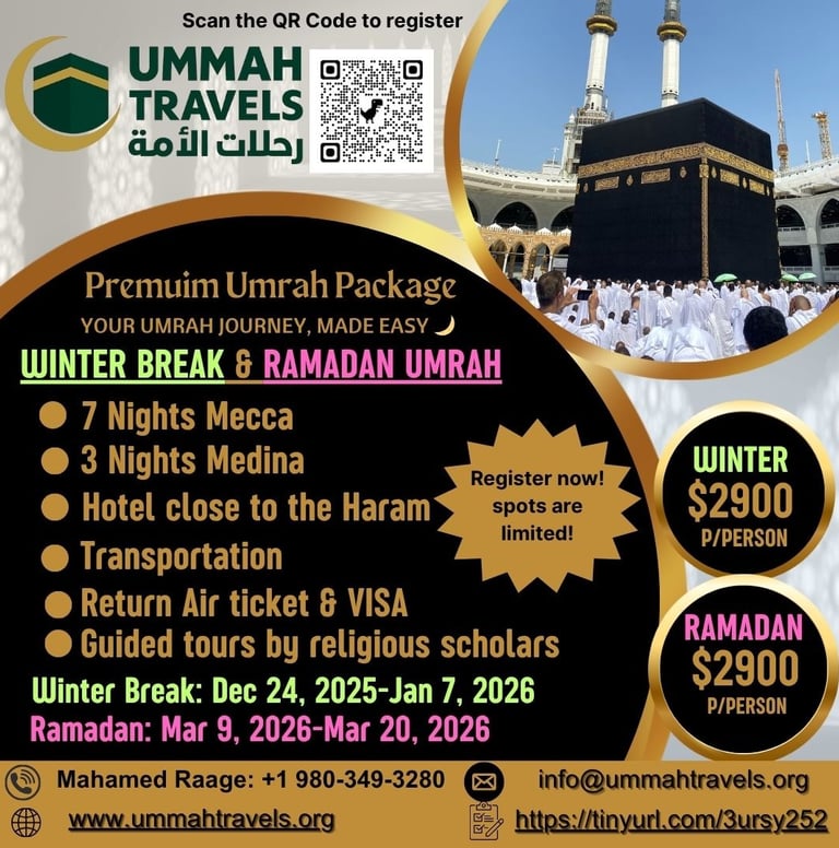 Tailored Hajj and Umrah packages for the Muslim Ummah in the Midwest, U.S.A.
